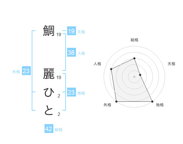 鯛 麗ひとさんの地格は23画の5点!
