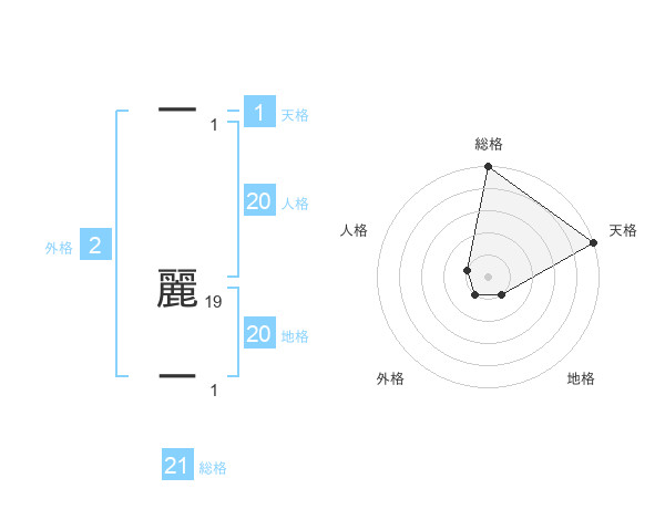 一 麗ーさんの天格は1画の5点!