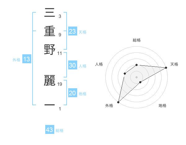 三重野 麗ーさんの天格は23画の5点!