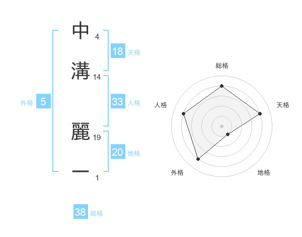 中溝 麗ーさんを姓名の画数から五運を鑑定