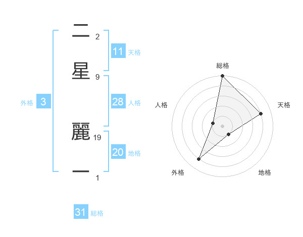 二星 麗ーさんの総格は31画の5点!