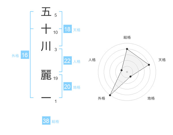 五十川 麗ーさんを姓名の画数から五運を鑑定