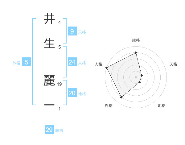 井生 麗ーさんを姓名の画数から五運を鑑定