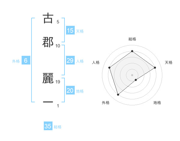 古郡 麗ーさんを姓名の画数から五運を鑑定