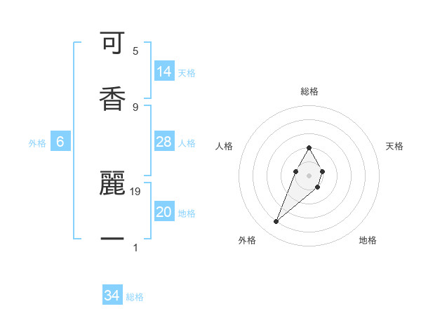 可香 麗ーさんの天格は14画の1点!