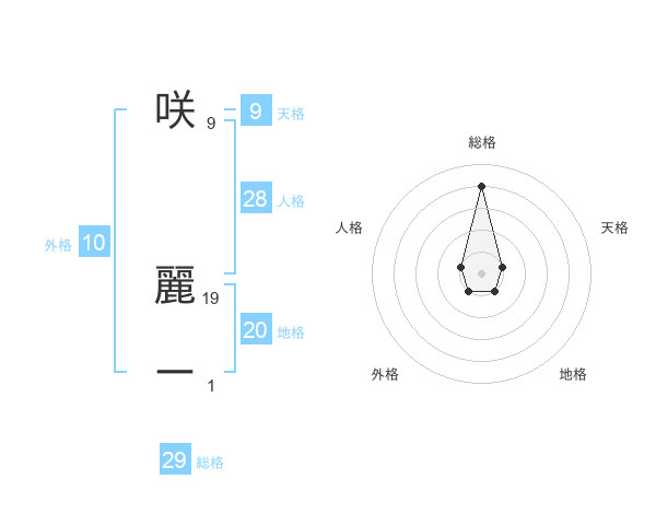 咲 麗ーさんの総格は29画の4点!