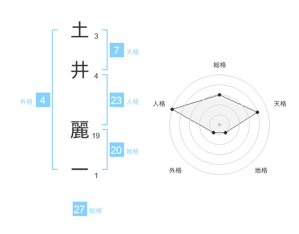 土井 麗ーさんを姓名の画数から五運を鑑定