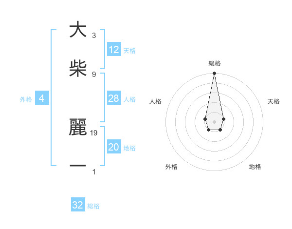 大柴 麗ーさんを姓名の画数から五運を鑑定
