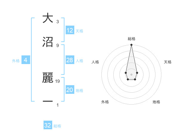 大沼 麗ーさんを姓名の画数から五運を鑑定