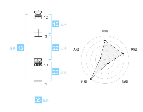 富士 麗ーさんを姓名の画数から五運を鑑定