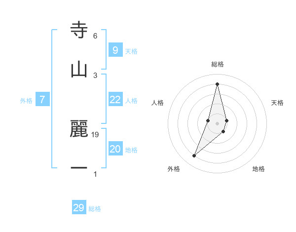 寺山 麗ーさんの総格は29画の4点!