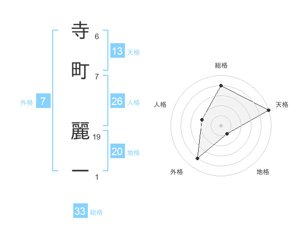 寺町 麗ーさんの天格は13画の5点!