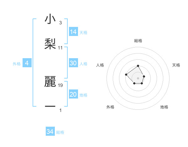 小梨 麗ーさんの総格は34画の2点!