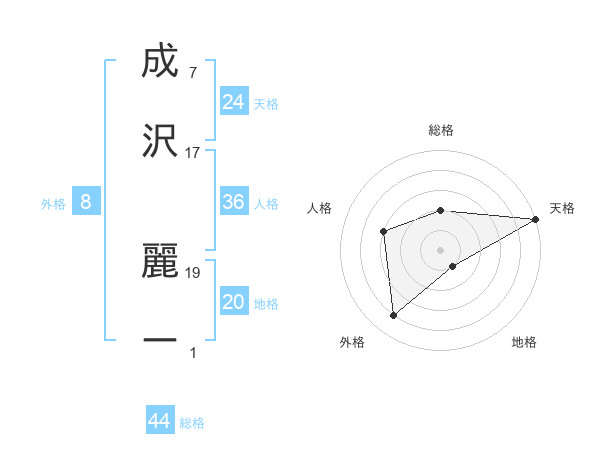 成沢 麗ーさんの総格は44画の2点!