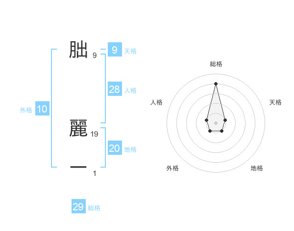 朏 麗ーさんの総格は29画の4点!