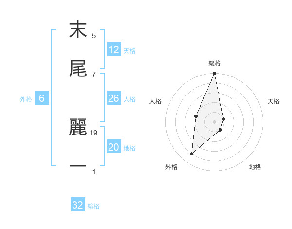 末尾 麗ーさんの総格は32画の5点!