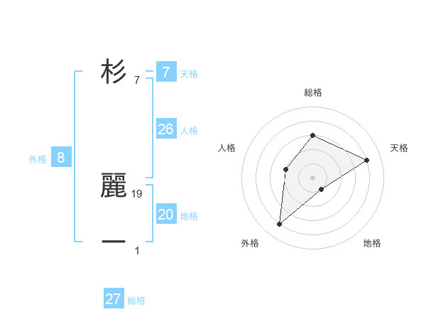 杉 麗ーさんの総格は27画の3点!