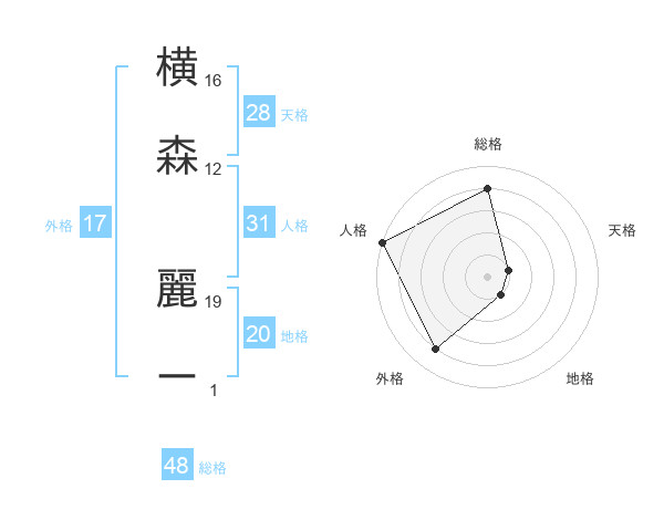 横森 麗ーさんを姓名の画数から五運を鑑定