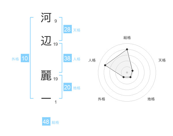 河辺 麗ーさんの総格は48画の4点!
