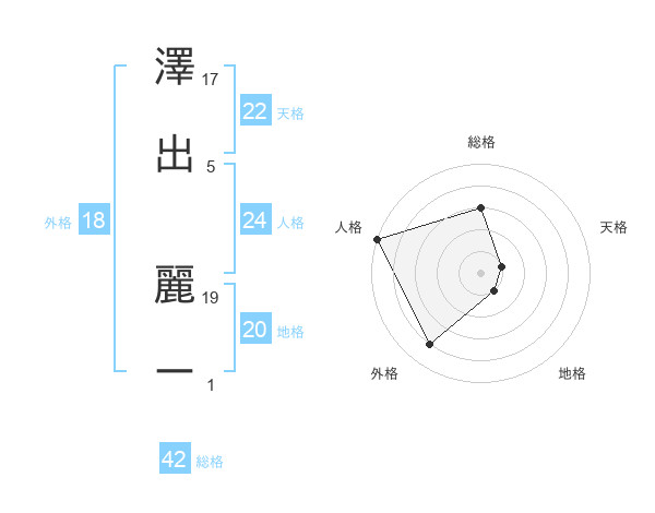澤出 麗ーさんの天格は22画の1点!