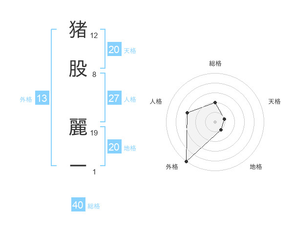 猪股 麗ーさんを姓名の画数から五運を鑑定