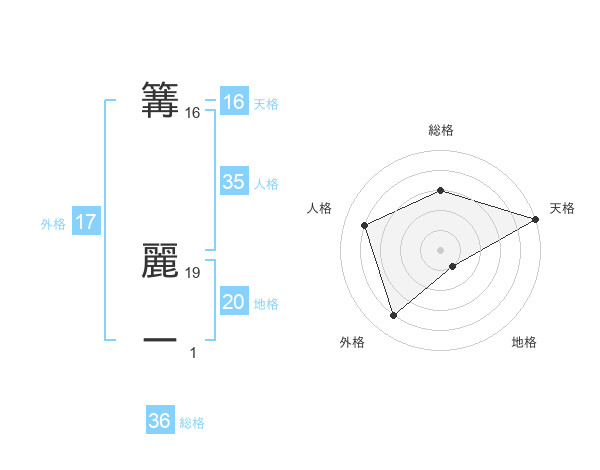 篝 麗ーさんを姓名の画数から五運を鑑定
