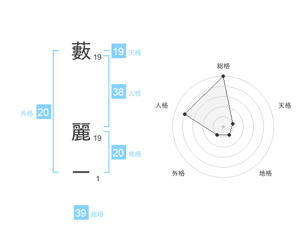 藪 麗ーさんの地格は20画の1点!