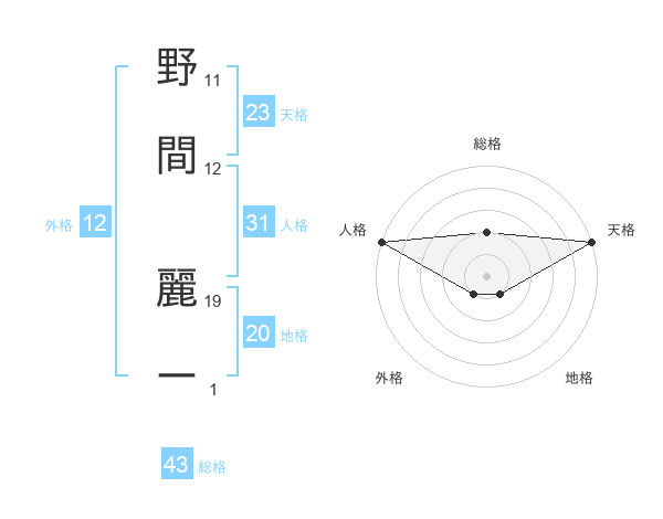 野間 麗ーさんを姓名の画数から五運を鑑定