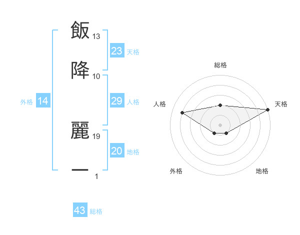 飯降 麗ーさんを姓名の画数から五運を鑑定