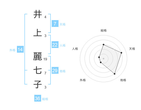 井上 麗七子さんを姓名の画数から五運を鑑定