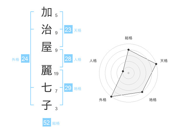 加治屋 麗七子さんの天格は23画の5点