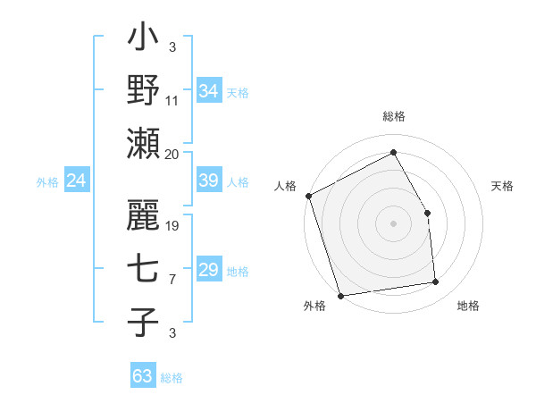 小野瀬 麗七子さんを姓名の画数から五運を鑑定
