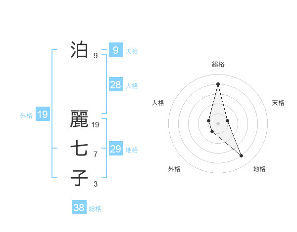 泊 麗七子さんの総格は38画の4点!