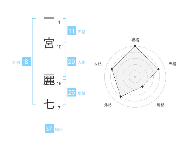 一宮 麗七さんの総格は37画の5点!