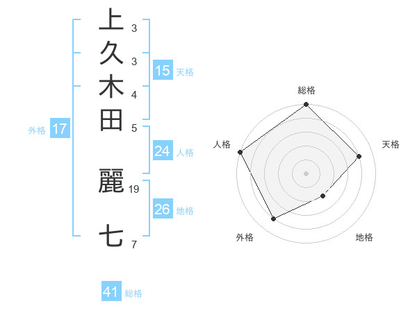 上久木田 麗七さんを姓名の画数から五運を鑑定