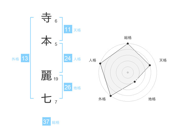 寺本 麗七さんの総格は37画の5点!
