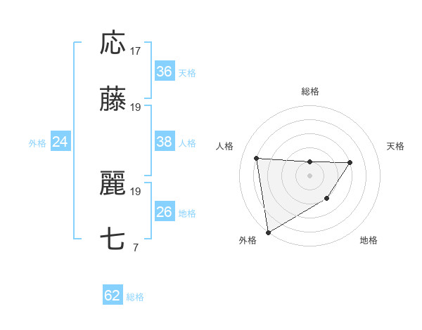 応藤 麗七さんを姓名の画数から五運を鑑定