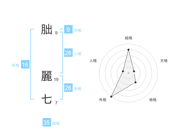 朏 麗七さんの総格は35画の4点!