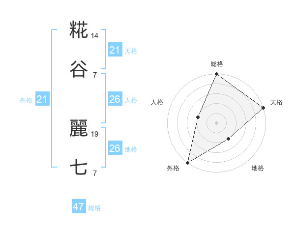 糀谷 麗七さんを姓名の画数から五運を鑑定