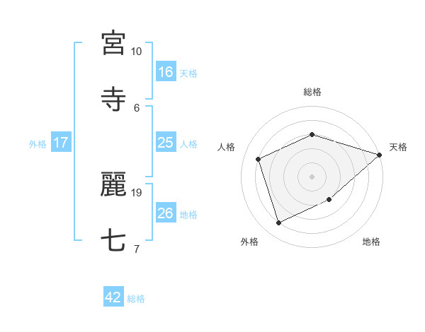 宮寺 麗七さんを姓名の画数から五運を鑑定