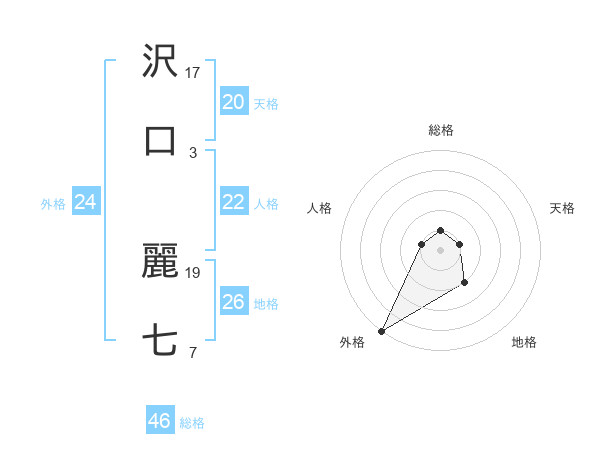 沢口 麗七さんを姓名の画数から五運を鑑定