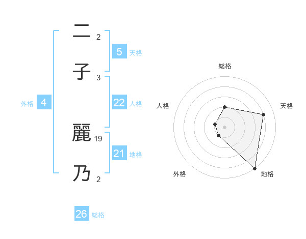 二子 麗乃さんの地格は21画の5点!