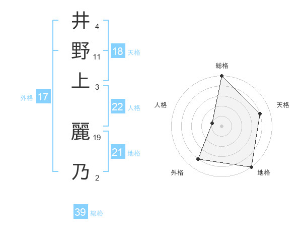 井野上 麗乃さんの総格は39画の5点