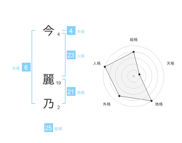 今 麗乃さんの総格は25画の4点!