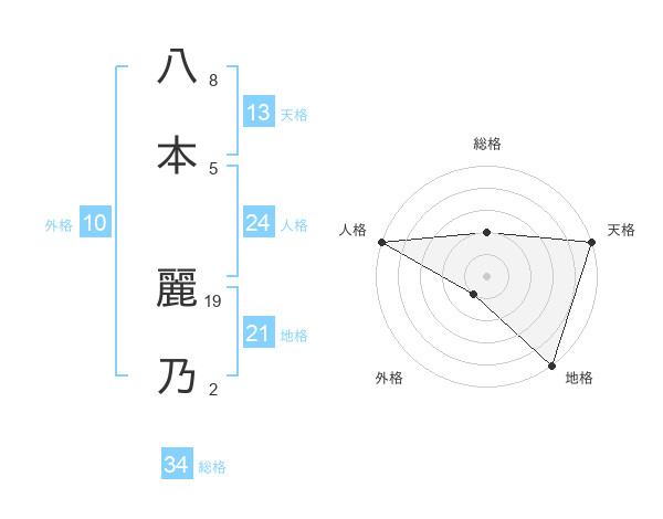 八本 麗乃さんの総格は34画の2点!