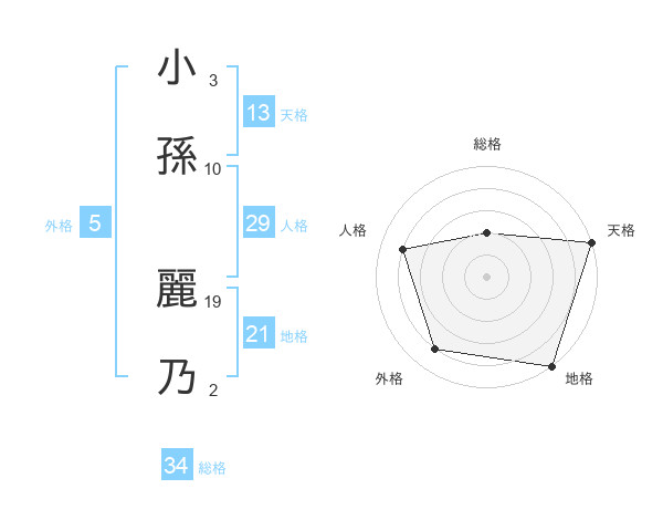 小孫 麗乃さんの天格は13画の5点!