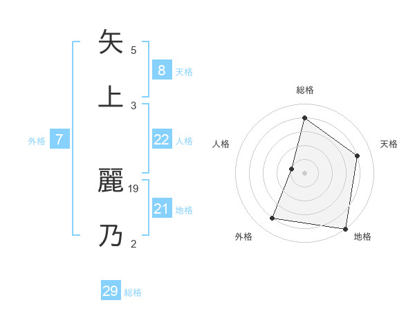 矢上 麗乃さんの総格は29画の4点!