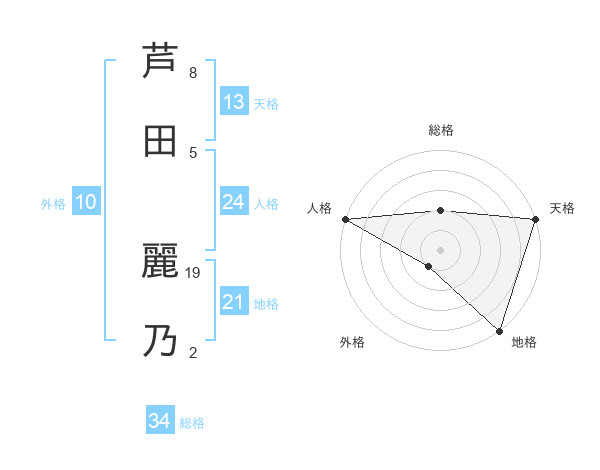 芦田 麗乃さんの総格は34画の2点!