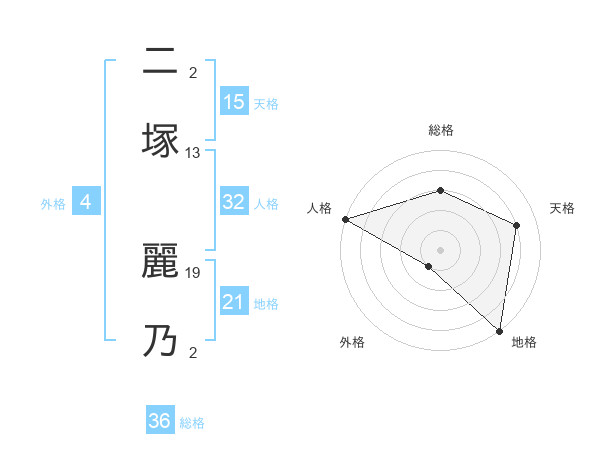 二塚 麗乃さんの天格は15画の4点!