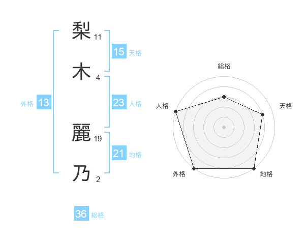 梨木 麗乃さんを姓名の画数から五運を鑑定
